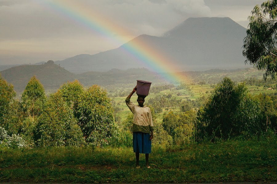 Durante el rodaje del largometraje documental «Los 100 días que no conmovieron al mundo» viajábamos con Vanessa desde Gisenyi hacia Kigali. Al costado de la Ruhengeri-Gisenyi Road, frente al Volcanoes National Park –hogar de gorilas en estado salvaje– apareció un arcoíris.